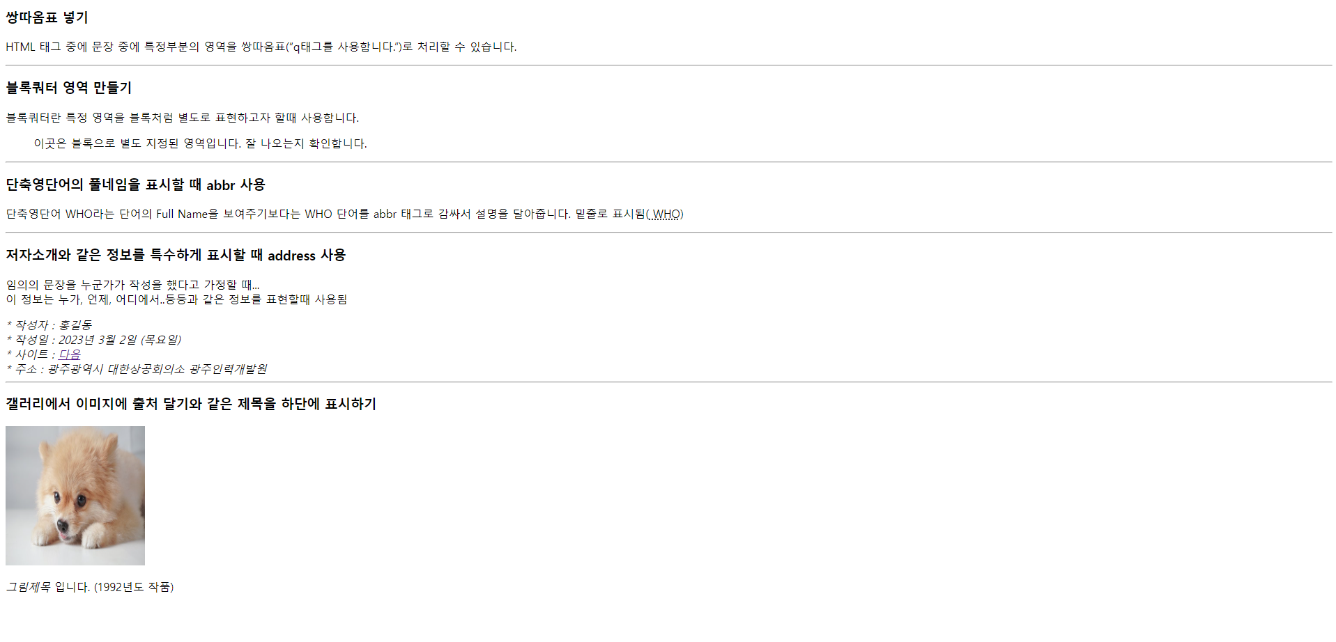 쌍따옴표(<q>q태그를 사용합니다.</q>)로 처리할 수 있습니다.
