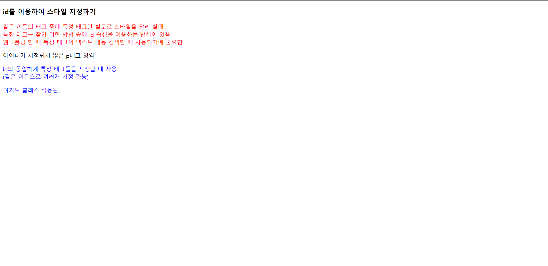 <h3>id를 이용하여 스타일 지정하기</h3>