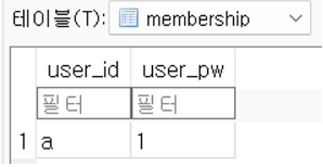 #필드 : user_id, user_pw