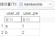 (membership 테이블로부터 user_id와 user_pw 컬럼에 있는 데이터값을 select)